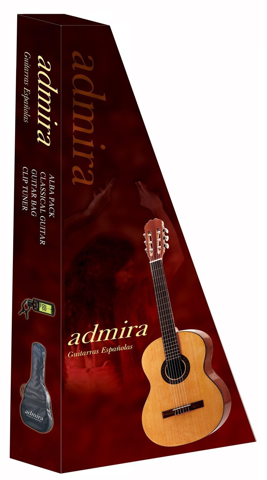Zestaw gitarowy, skłądający się z: gitary akustycznej Admira Alba 4/4, pokrowca Admira GigBag oraz tunera w postaci klipsu.