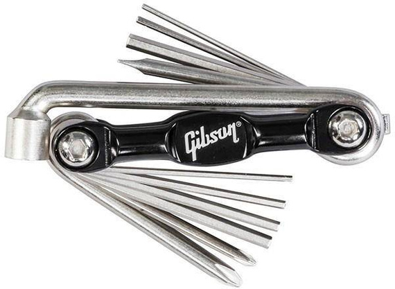 Strona A: 5/16” Truss Rod Socket, 4mm Slotted Screwdriver, 1/8” Hex Key, 1/16” Hex Key, 0.05” Hex Key, Lever with laser engraved reference marks (3/64'' and 5/64'') for adjusting action at the 12th fret.