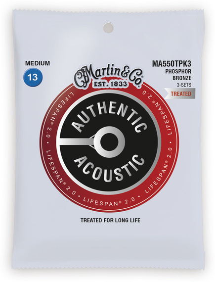 Struny do gitary akustycznej Martin MA550TPK3 Medium (13-56) AA Treated Phosphore Bronze 92/8