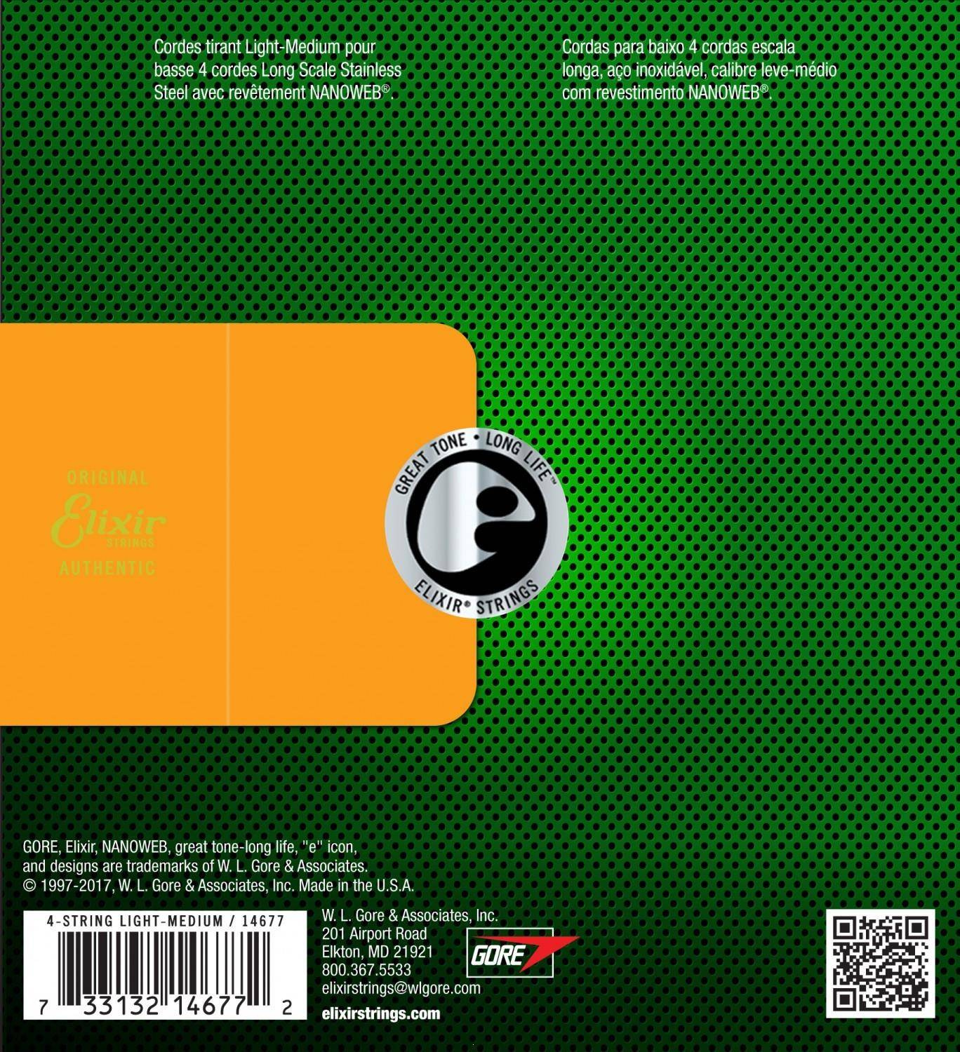 Struny z serii NanoWeb Bass Stainless Steell są wynikiem wieloletnich poszukiwań rozwiązania, będącego kompromisem pomiędzy perfekcyjnymi właściwościami mechanicznymi oraz pierwszoligowym brzmieniem. Prezentowany model, podobnie jak pozostałem struny basowe Elixir, wykonano w oparciu o autorską technologię NanoWeb, polegającą na pokryciu struny niezwykle cienką warstwą polimeru fluorowego. Wspomniana powłoka zapewnia doskonałą ochronę mechaniczną oraz chemiczną, tworząc szczelną barierę pomiędzy struną a środowiskiem, w którym ona pracuje. Dzięki temu żywotność strun Elixir przekracza aż pięciokrotnie żywotność zwykłych strun. Seria Stainless Steel została wykonana ze stali nierdzewnej, której charakterystyka brzmieniowa skupia się wokół mocnego środka, gwarantując potężną, agresywną dynamikę oraz charakterystyczne, warczące brzmienie.