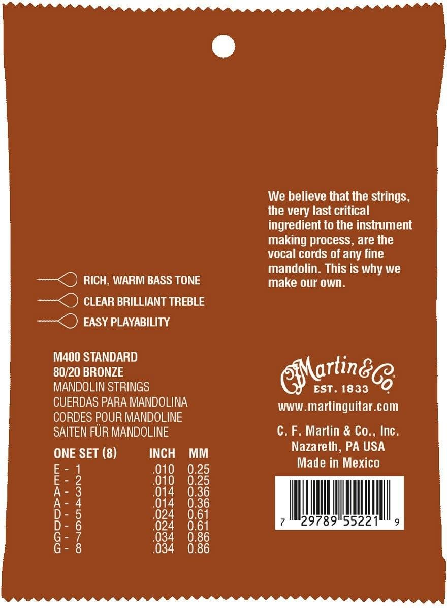 Biegaj po gryfie z wyjątkową szybkością i płynnością. Mandolina jest wspaniałym instrumentem, który stał się integralnym elementem amerykańskiego zespołu Bluegrass. Struny Martin Mandolin są wykonane tak, aby zapewniać bogate, ciepłe brzmienie z wspaniale wybrzmiewającą górą.