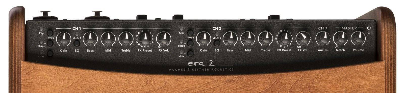 Era 2 to drugi wzmacniacz akustyczny z serii akustycznej ery Hughes & Kettner. Oprócz niezwykłej mocy akustycznej era 2 zapewnia bogatą szczegółową definicję niezrównanej autentyczności i doskonałego brzmienia, a także szereg niezwykle innowacyjnych i intuicyjnych funkcji, dzięki którym każdy występ jest lepszy.