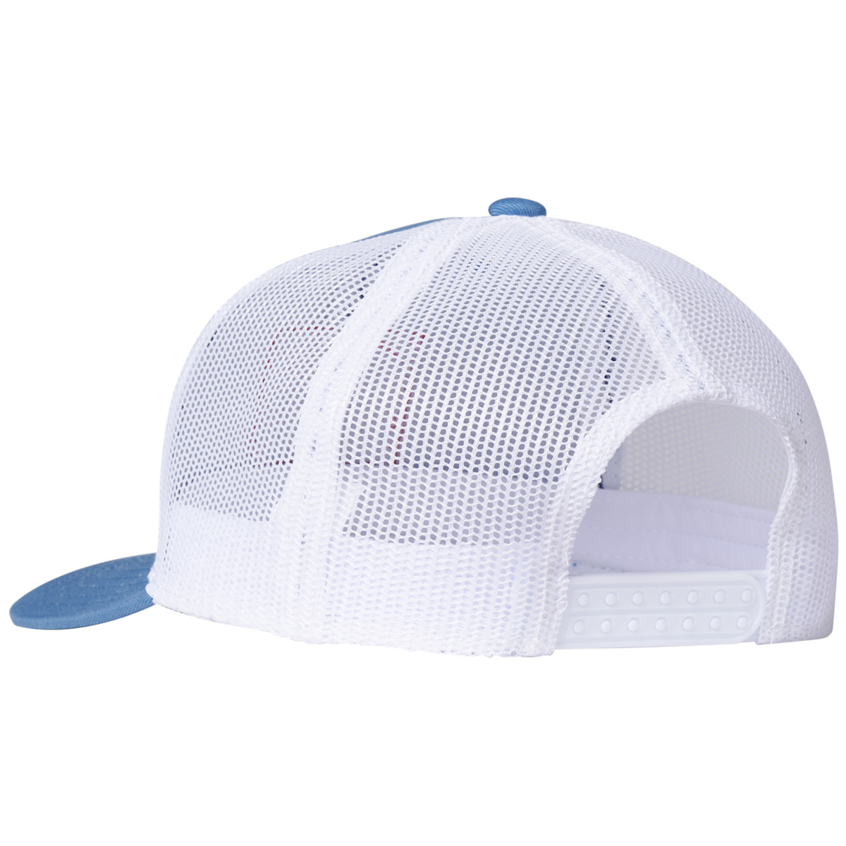 Czapka typu trucker w klasycznym połączeniu niebieskiego i białego, stworzona dla fanów gitarowego stylu made in USA.