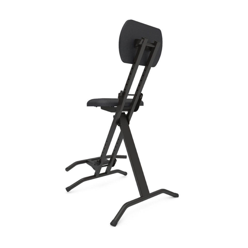 - Wygodne i stabilne krzesło dla gitarzysty z wielostopniową regulacją podnóżka oraz siedziska