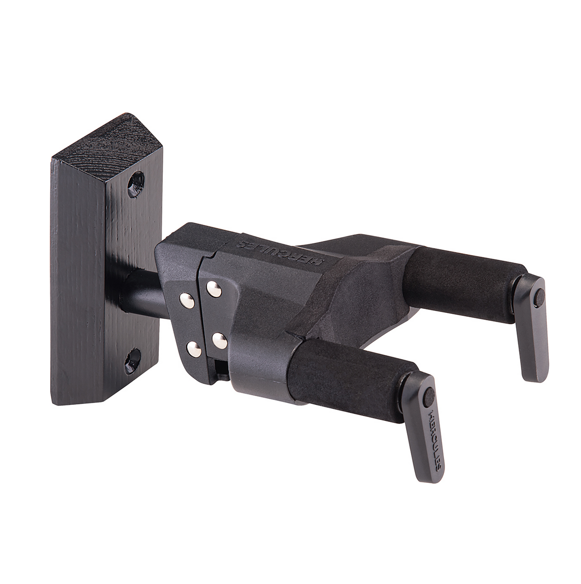 Uchwyt ekspozycyjny ścienny krótki (drewniana podstawa) do gitary. Nowe wieszaki i statywy Hercules GSP38WBK Plus wykorzystują kolejną już generację systemu AGS (Auto Grip System) zabezpieczajacego instrumenty przed wypadnięciem. Szerszy, automatycznie blokujący się uchwyt dostosowany jest do gitar o większych gryfach (do 52 mm), lekki statyw posiada ulepszoną konstrukcję regulacji wysokości oraz gumowe nóżki zapewniające jeszcze większą stabilno.