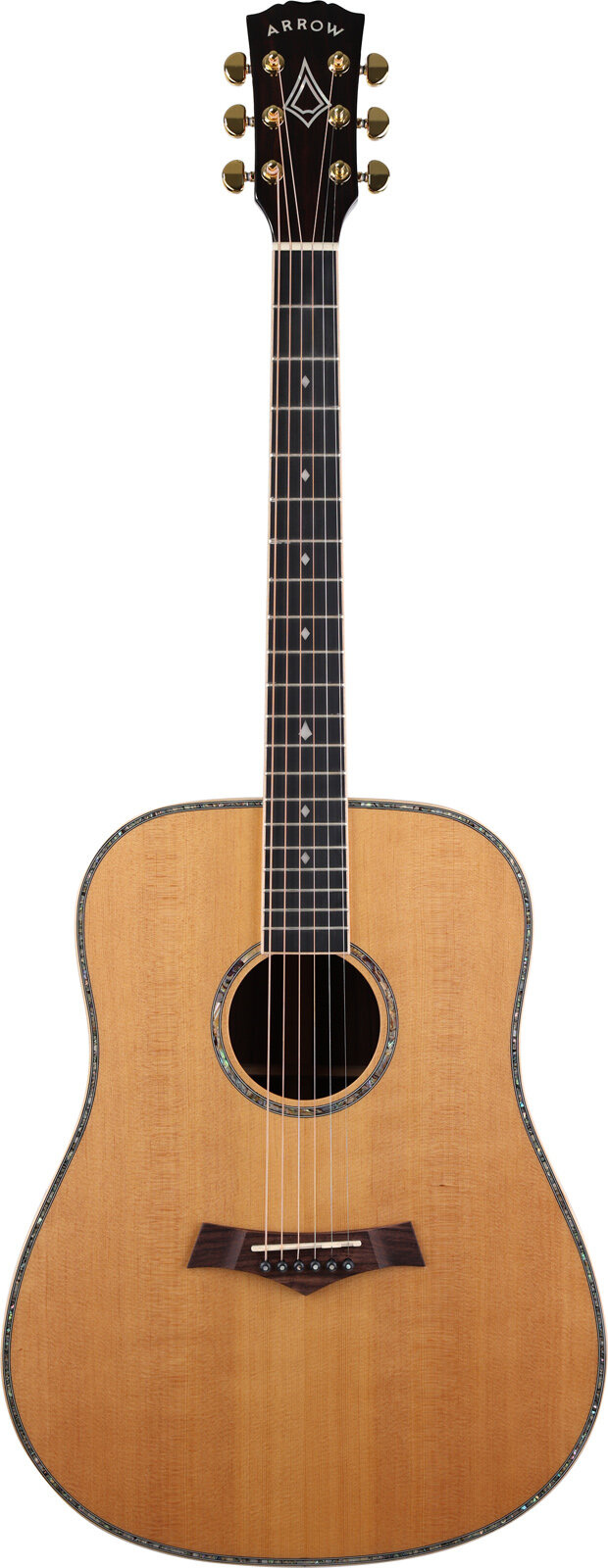 Arrow Platinum Dreadnought to ręcznie wykonana gitara akustyczna o dużym korpusie, która oferuje pełne, donośne i dynamiczne brzmienie – idealna zarówno na scenę, jak i do studia nagraniowego.
