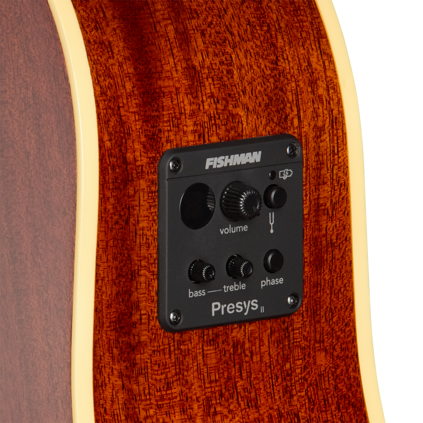 Gitara wyposażona jest w elektronikę Fishman S-Core z przedwzmacniaczem PreSys II, oferującym regulację głośności, basów, sopranów oraz przełącznik fazy. Wbudowany tuner umożliwia szybkie sprawdzenie stroju nawet podczas koncertu. Dzięki praktycznemu rozwiązaniu z gniazdem i komorą baterii wymiana 9V ogniwa jest szybka i wygodna.