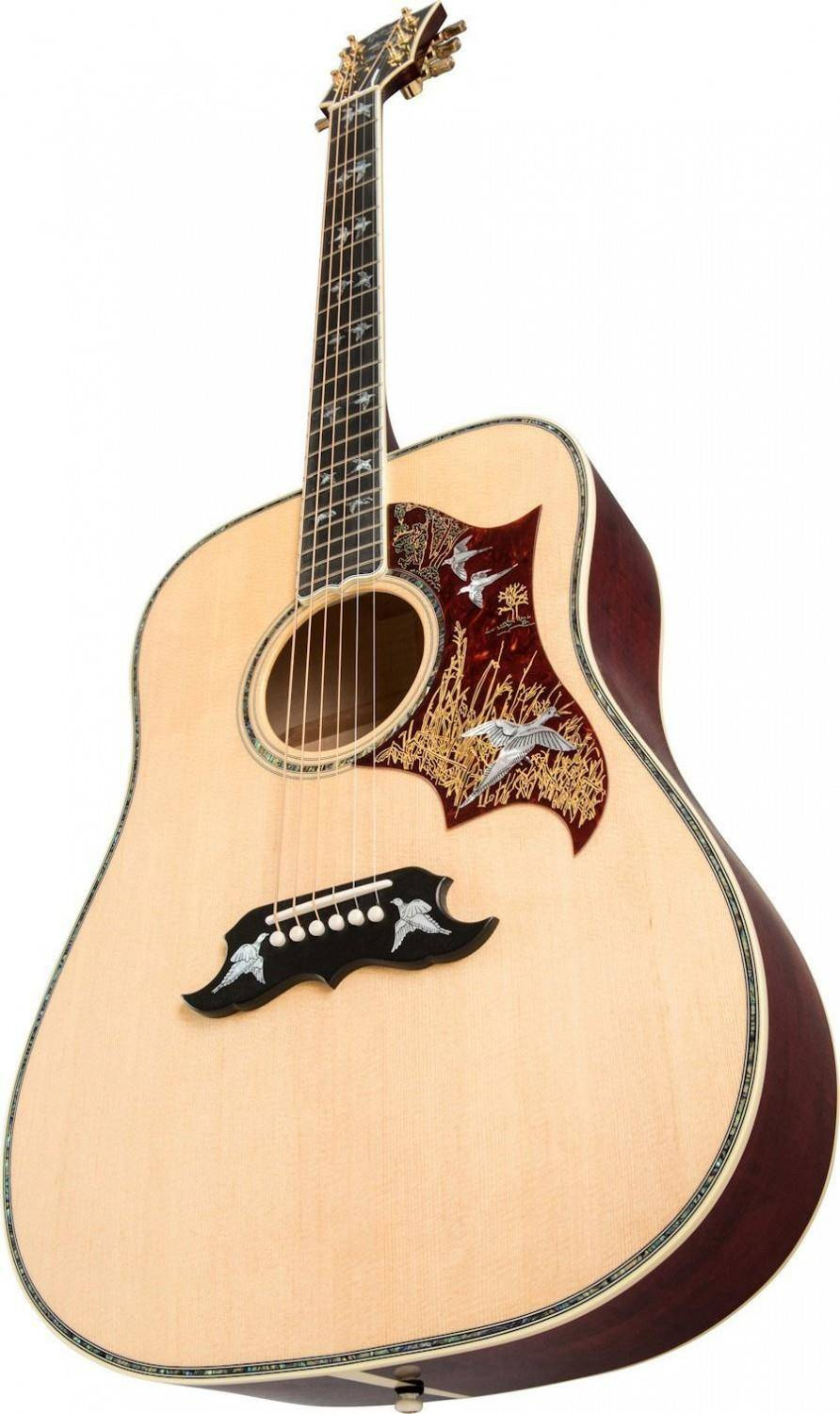 Doves in Flight łączy cechy legendarnego Dove z jednymi z najlepszych prac dekoracyjnych w branży. Doves in Flight wyświetla 28 indywidualnie wygrawerowanych inkrustacji gołębicy - siedem na główce, 16 na podstrunnicy, trzy na maskownicy i dwie na mostku - każda z własnym, oryginalnym projektem. Każde pokrętło też jest ręcznie grawerowane.