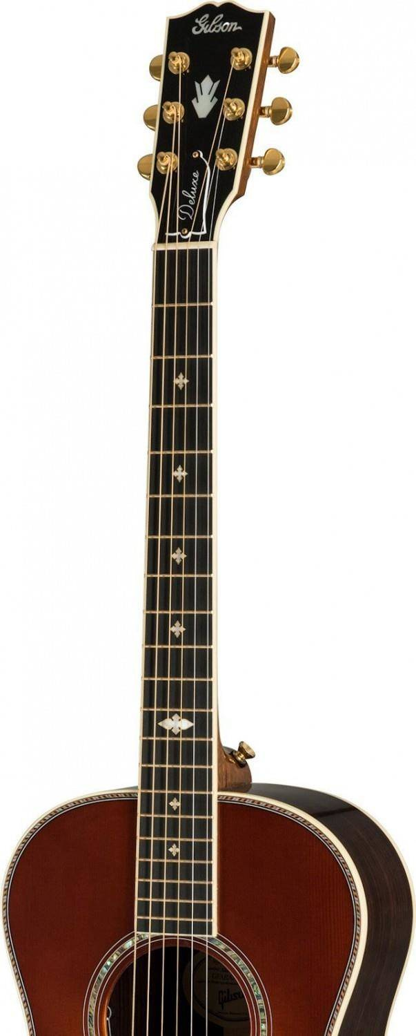 Gibson L-00 Deluxe zapewnia niezrównaną projekcję brzmienia, niespotykaną w małych gitarach. Ten wyjątkowy L-00 Deluxe oferuje doskonały dźwięk, stworzony przez wyselekcjonowane tył i boki z drzewa różanego. Klasyczne klucze mini Grover i logo skryptowe Gibson zwieńczają główkę. Ta limitowana edycja ma piękne wielowarstwowe wykończenie z dodatkowym wielokolorowym bindingiem, jest wyposażony przetwornikami LR Baggs ™ VTC, co czyni ten model prawdziwym "Deluxe".