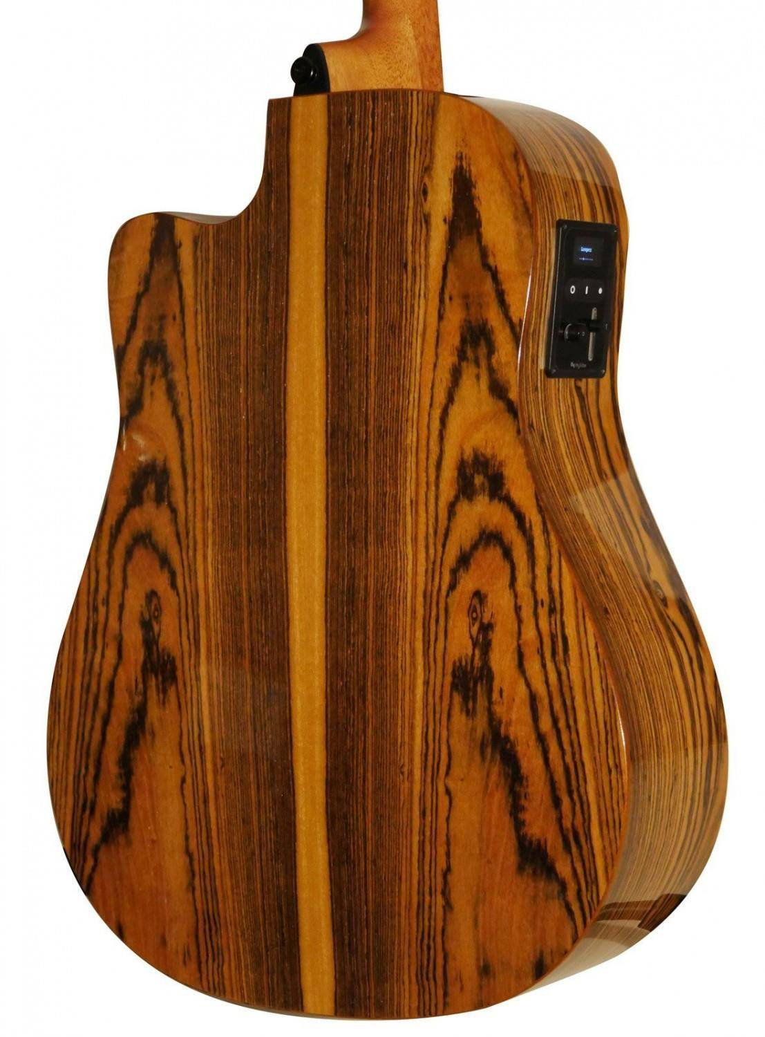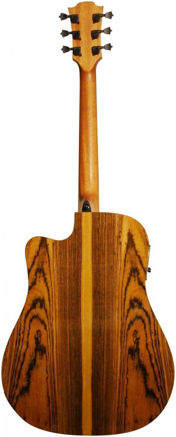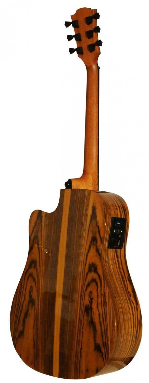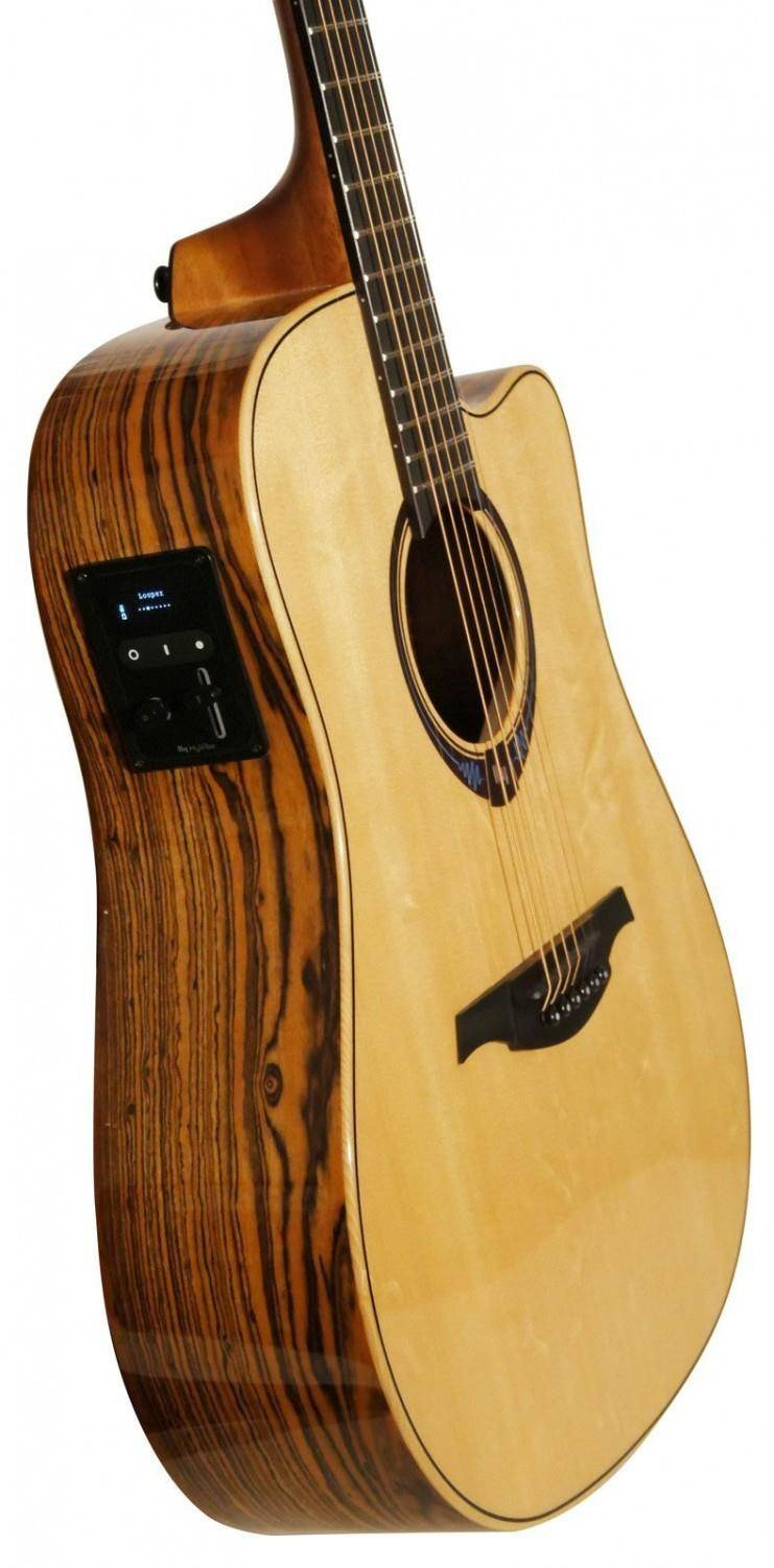 Inteligentna smart gitara Lag HyVibe THV30DCE jest wykonana ze specjalnie dobranych gatunków drewna i dzięki między innymi temu charakteryzuje się unikalnym brzmieniem z pełnym i bogatym środkiem oraz imponującym sustainem. Każdy kawałek drewna jest starannie dobrany, a wszystkie detale precyzyjnie dopracowane. Wąski profil gryfu powoduje, że na gitarze gra się wygodnie, a sama gra sprawia dużą przyjemność.