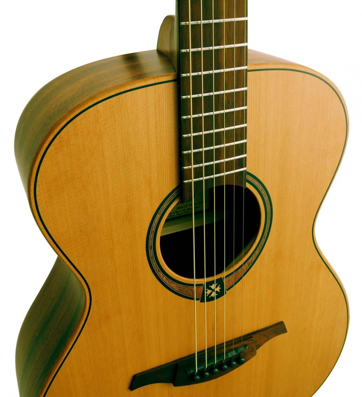 Oto najnowszy model gitary akustycznej z seriiTramontane Lag T170Aw kształcie pudła rezonansowego Auditorium z cutaway. Top zbudowano z litego czerwonego cedru, boki i tył z drewna Cognac Brow khaya w wykończeniu satynowym open pore. Gryf z drewna khaya tropikalna, podstrunnica z drewna brownwood na którą nabite jest 20 progów. Klucze odlewane w kolorze czarnym z przełożeniem 18:1 pozwolą na szybkie i precyzyjne strojenie instrumentu.Gitara jest już dostępna i można o nią pytać w punktach sprzedaży Lag.