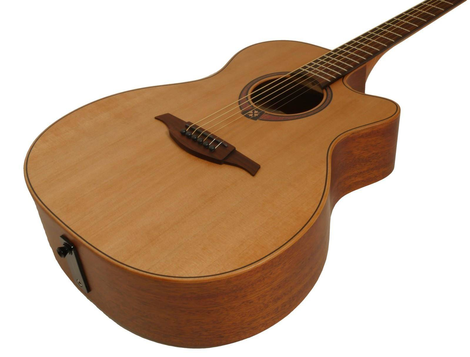 Oto najnowszy model gitary elektro-akustycznej z seriiTramontane Lag T170ACEw kształcie pudła rezonansowego Auditorium z cutaway. Top zbudowano z litego czerwonego cedru, boki i tył z drewna Cognac Brow khaya w wykończeniu satynowym open pore. Gryf z drewna khaya tropikalna, podstrunnica z dewna brownwood na którą nabite jest 20 progów. Klucze odlewane w kolorze czarnym z przełożeniem 18:1 pozwolą na szybkie i precyzyjne strojenie instrumentu. Gitara jest zaopatrzona w elektronikę aktywną Fishman Ink3. To nowy standard wśród przedwzmacniaczy przeznaczonych dla gitar elektro-akustycznych, który zachwyca elegancją i wyrafinowanym designem. Niski profil potencjometrów nie zaburza estetyki instrumentu. Posiada klasyczny układ elektroniczny Fishman, wbudowany tuner typu push-to-tune z wyświetlaczem LCD oraz 3-stopniową korekcję brzmienia (bass, middle, treble). Gitara jest już dostępna i można o nią pytać w punktach sprzedaży Lag.
