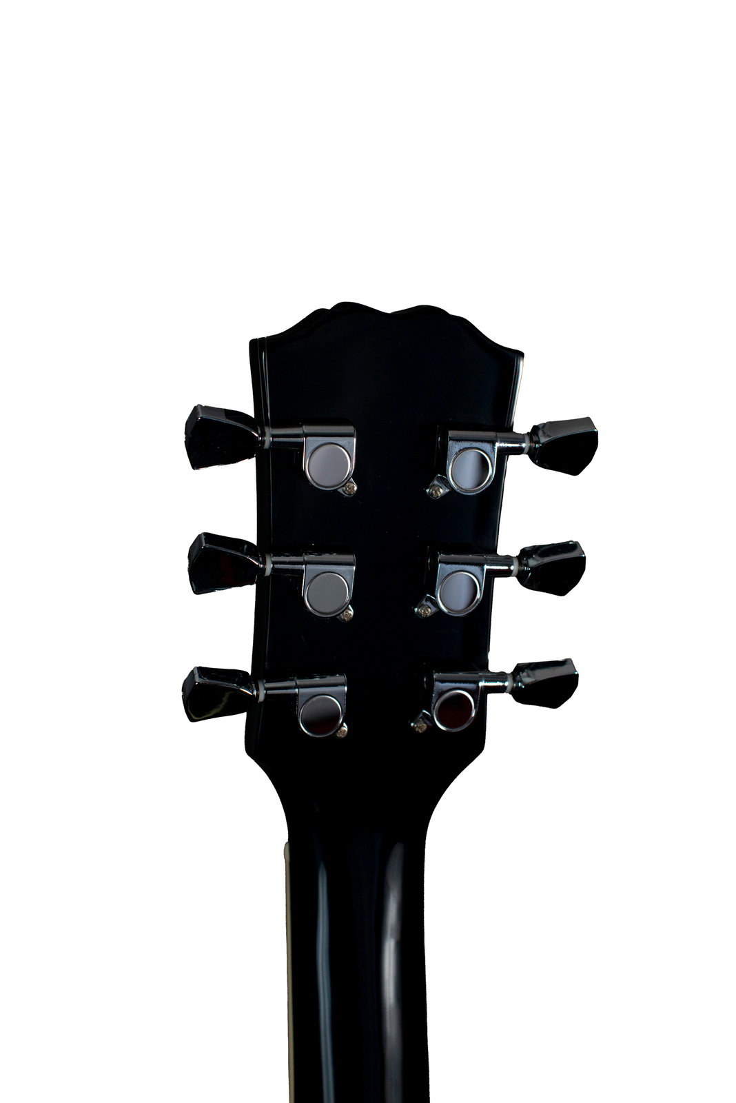 Lity mahoń w korpusie to fundament rockowego brzmienia. Biały binding dodaje elegancji i kontrastu do głębokiej czerni wykończenia. Mostek 2-Piece Hardtail zapewnia stabilność stroju i solidny atak każdego dźwięku.
