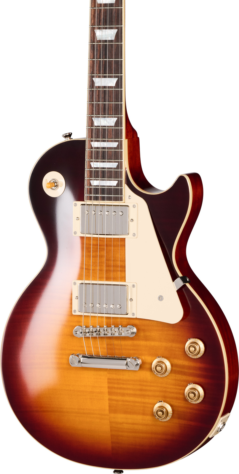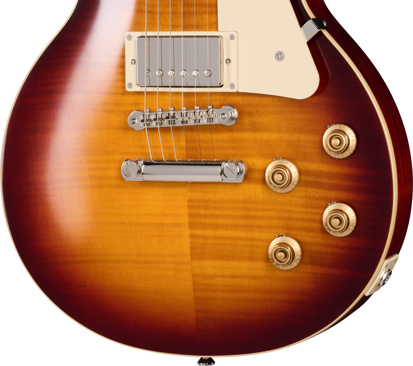 Na pokładzie mamy mahoniowy korpus, wyposażony w klonowy top z nakładką z klonu płomienistego AAA. Jednoczęściowy gryf wykonano z mahoniu, a jego profil to 1959 Rounded Medium C – wygoda spotyka się tu z autentycznością.