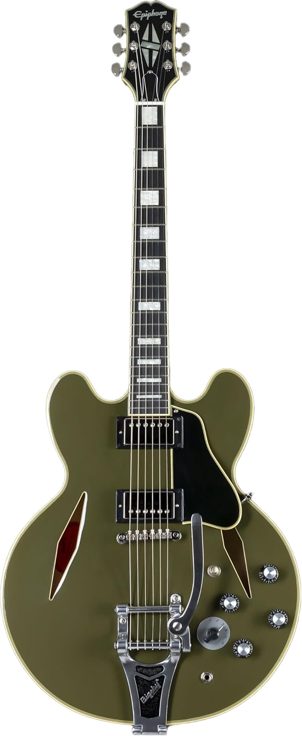 Epiphone *DISC* Shinichi Ubukata ES-355 Custom Olive Drab Bigsby - Incl. Hard Case gitara elektryczna