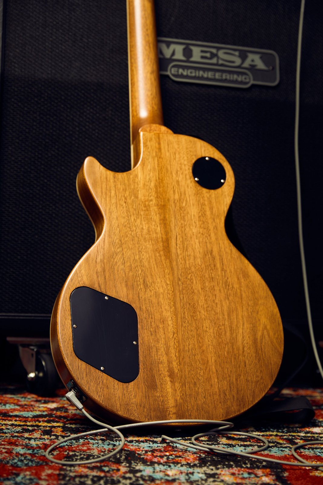 Top wykonano z figuralnego klonu (AAA). Na mahoniowym gryfie osadzono podstrunnicę z palisandru indyjskiego. Za moc odpowiada para przetworników Greenybucker.
