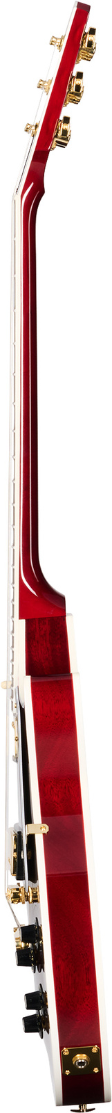 Korpus wykonany w tradycyjny sposób, z bogatym bindingiem i wykończeniem, emanuje elegancją, która od dekad definiuje serię Les Paul Custom. Całości dopełnia złoty osprzęt – mostek Nashville Tune-O-Matic, strunociąg ze stopu aluminium oraz klucze Grover Rotomatic – zapewniający stabilność i styl.