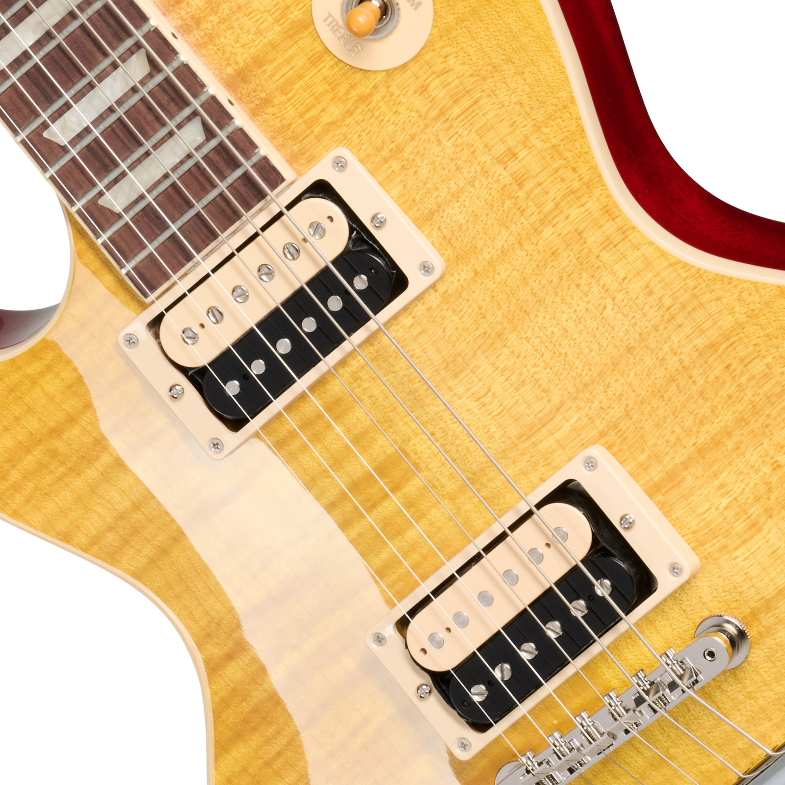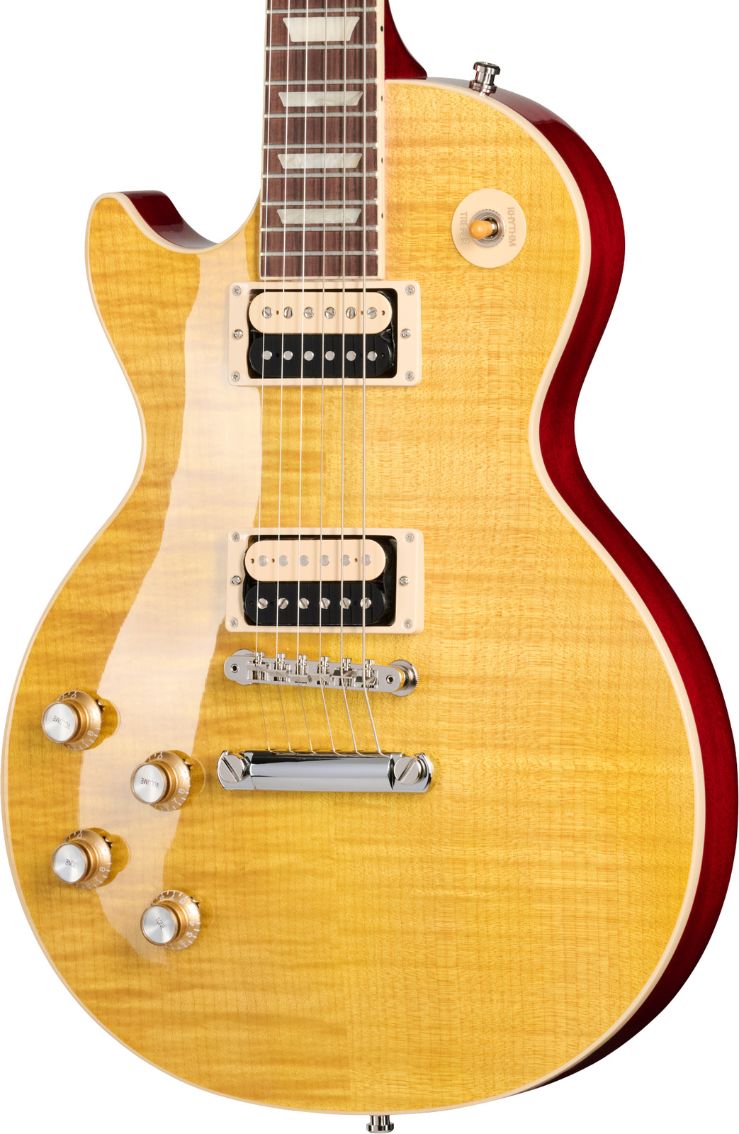Mahoniowy korpus z klonowym topem AAA oferuje potężny rezonans i bogaty sustain, podczas gdy gryf o profilu Vintage ’50s i podstrunnica z palisandru zapewniają autentyczne, tradycyjne wrażenia z gry. 22 progi medium jumbo oferują komfort i precyzję w każdej pozycji – od akordowych riffów po ekspresyjne solówki.