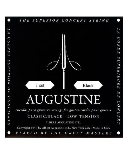 Formuła Augustine Black łączy twarde struny wiolinowe z miękkimi basami, wzmocnionymi cienką miedziana owijką. Struny te nadają mocny i wyrazisty charakter wysokich dźwięków oraz pełne i głębokie brzmienie basów.