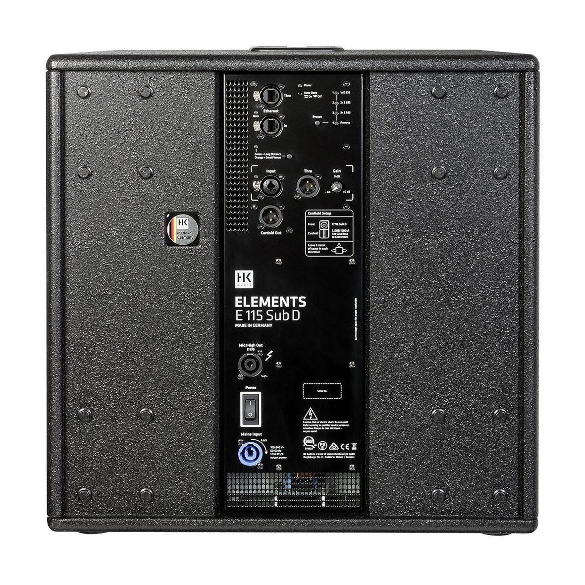 Nowy subwoofer HK Audio ELEMENTS E115 Sub D to wysokowydajny model, który przenosi serię Elements na wyższy poziom dzięki nowoczesnym technologiom sterowania i wzmacniania. 15-calowy głośnik napędzany jest przez 1500-watowy wzmacniacz, a drugi, o mocy 900 W, zasila do trzech jednostek HK Audio Elements E835 Satellite. Subwoofer oferuje imponującą moc i elegancki design, ceniony przez muzyków, DJ-ów, firmy rentalowe oraz prezenterów.