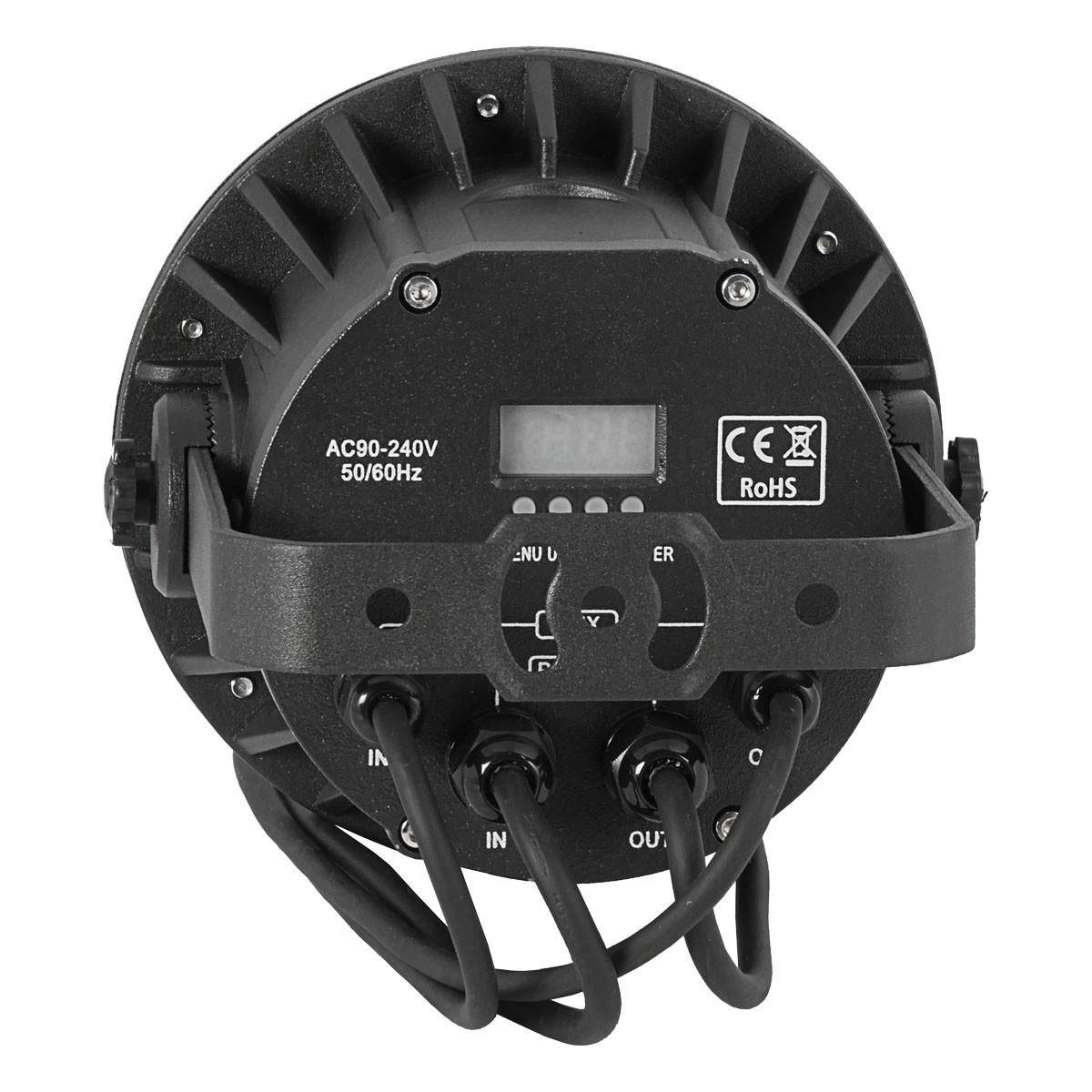 Wytrzymały i odporny na warunki atmosferyczne PAR o łącznej mocy 60W. Szczelna obudowa odprowadzająca ciepło oraz hermetyczne złącza zezwalają na wykorzystanie tego urządzenia do podświetlania detali architektury i krajobrazu w niesprzyjających warunkach pogodowych. Pojedynczy uchwyt pozwala na łatwy montaż do podłoża i zabezpieczenie urządzenia. Sterowanie realizowane za pomocą wodoszczelnego panelu z tyłu urządzenia lub sygnału DMX.