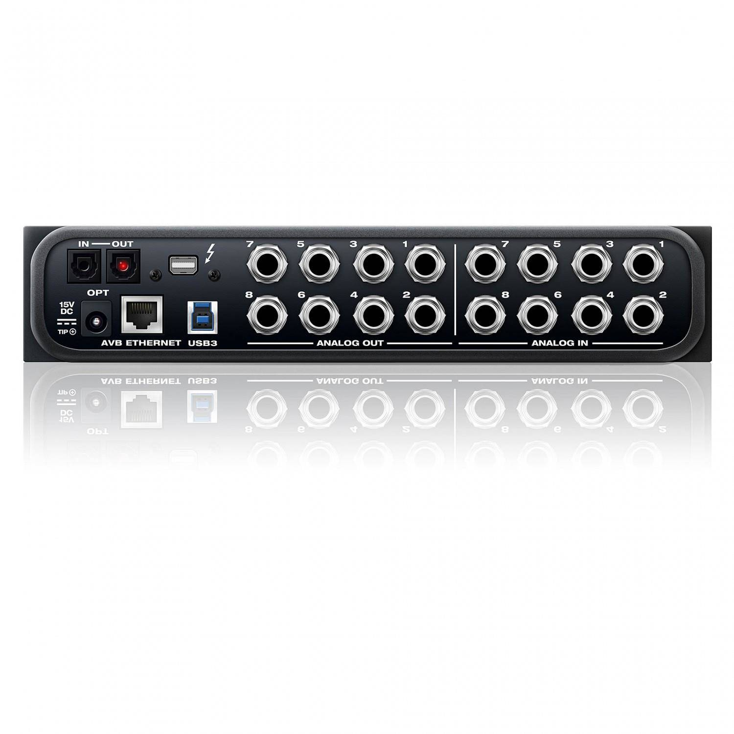 Interfejs audio Thunderbolt / USB3 / AVB Ethernet z DSP i miksowaniem. Wyposażony w renomowaną technologię ESS Sabre32 Ultra ™ DAC, 8A ma tę samą wielokrotnie nagradzaną jakość dźwięku analogowego i sprawdzoną wydajność, jak flagowy interfejs 16A MOTU - zapakowany w ruchomą pół-stelażową obudowę. Otrzymasz 8 x 8 zbalansowanych analogowych, 8-kanałowych optycznych i niezależnych wyjść słuchawkowych ADAT dla 16 wejść i 18 wyjść. Porty optyczne obsługują również stereofoniczny TOSLink (optyczny S / PDIF). Renomowana technologia ESS Sabre32 Ultra ™ DAC zapewnia zakres dynamiczny 123 dB i tę samą sprawdzoną, wielokrotnie nagradzaną jakość dźwięku, jak flagowy model 16A firmy MOTU. 8A zapewnia opóźnienia w ruchu w obie strony (RTL) tak niskie jak 1,6 ms przy częstotliwości próbkowania 96 kHz w porównaniu z Thunderbolt ™ - i zadziwiające 1,9 ms nad USB - z wysokowydajnymi hostami DAW. Łączy się z komputerem za pomocą Thunderbolt ™, superszybkiego USB 3.0 lub AVB / TSN Ethernet - z obsługą do 256 kanałów audio (128 w i 128 na wyjściu). Firmware zgodny ze standardem USB audio i wydajne, standardowe w branży sterowniki współpracują z dowolnymi aplikacjami audio. Łączy się z iPadem ™ za pomocą standardowego zestawu do podłączenia aparatu (adapter). 8-kanałowy cyfrowy mikser 8A zapewnia 7 stereofonicznych linii Aux, 3 grupy, dostęp do 64 wejść sieciowych i efektów DSP, w tym pogłos, 4-pasmowy korektor, bramę i kompresję. Jeśli znasz się na wielkoformatowej konsoli miksującej, poczujesz się jak w domu. Jeśli kiedykolwiek chciałeś mieszać na dużej konsoli, miejsce kierowcy jest teraz twoje. Klasyczny pogłos. Kompresja wzorowana na legendarnym kompresorze LA-2A. EQ wzorowane na brytyjskich korektorach konsol analogowych. Silnik DSP z mieszaniem i efektami 8A zapewnia praktycznie nieograniczoną przestrzeń nad głową i najwyższą jakość dźwięku. Wyślij dowolne wejście do dowolnego wyjścia lub wielu wyjść. Obejmuje routing do iz komputera oraz wszystkie urządzenia w sieci audio. Oprogramowanie używane do sterowania 8A nie znajduje się na dysku twardym. Jest to aplikacja internetowa obsługiwana przez sam sprzęt. Oznacza to, że możesz kontrolować cyfrowy procesor DSP 8A, miksowanie, ustawienia urządzenia i routing sieciowy z ulubionej przeglądarki na laptopie, tablecie lub smartfonie połączonym przewodowo lub Wi-Fi z siecią lokalną. Użyj dowolnego klienta WWW na dowolnej platformie - Mac, Windows, Linux, iOS, Android - o ile udostępnia tę samą sieć.